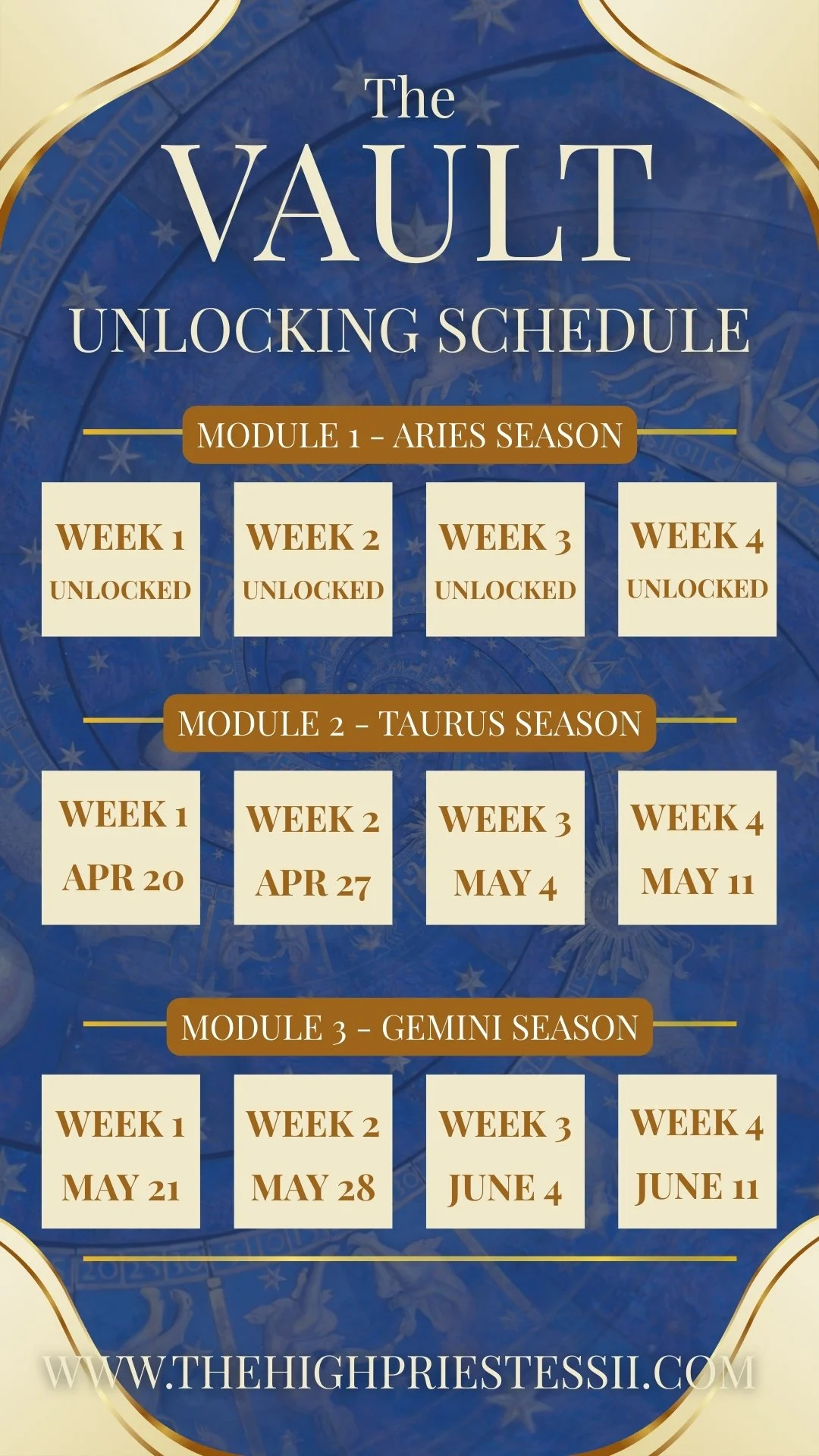 The V.A.U.L.T. is a living temple of remembrance. Here, you are not chasing ascension—you are embodying it. Through ritual, astrology, and grounded witchcraft, you learn to anchor your power into the body, command your energy, and create your reality with devotion and clarity. Each module builds upon the last, guiding you from energetic stabilization to empowered creation. The academy bridges all levels of practice to meet you where you are at and to help you grow.